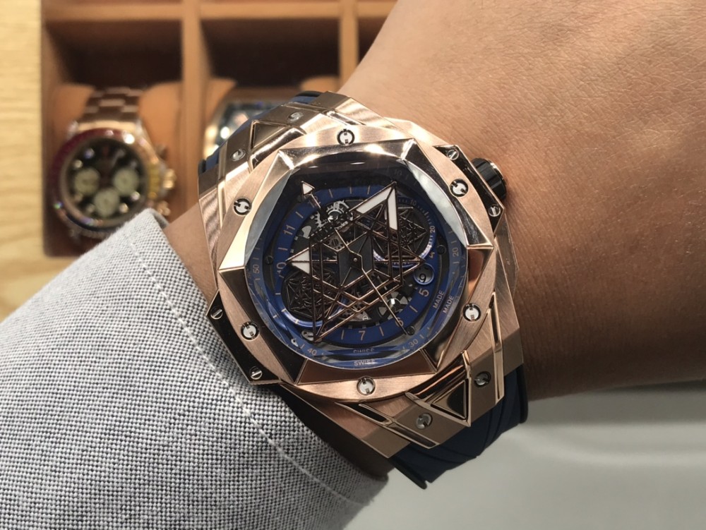 CH 위블로 빅뱅 상블루 II 타투 워치는 유명 타투 스튜디오 상블루와의 또 다른 협업을 통해 탄생한 새로운 타투 II 타임피스입니다. 기하학적 형태를 영리하게 디자인하여 브랜드의 야심과 디자인 철학을 완벽하게 담아냈습니다. 타투 II 워치는 더욱 세련된 라인을 사용하여 생생한 3차원 시각적 경험을 선사합니다. 1️⃣ 45mm 케이스는 케이스 전체에 걸쳐 그래픽 요소가 흐르며, 육각형 베젤에는 커팅과 인그레이빙을 통해 통합되었습니다. 6개의 H자형 티타늄 스크류가 베젤을 견고하게 고정합니다. 러그는 날카로운 각도와 선으로 강렬한 디자인 감각을 보여줍니다. 2️⃣ 다이얼에서 가장 눈길을 사로잡는 것은 다이아몬드 형태의 시침과 분침, 그리고 두 개의 육각형 바늘입니다. 시간이 지남에 따라 독특한 기하학적 패턴의 시각적 효과를 만들어냅니다. 3️⃣ 기하학적 라인으로 3차원적인 시각적 경험을 선사하는 블랙 러버 스트랩. 4️⃣ 사용하기 쉬운 폴딩 버클. 5️⃣ 이 시계는 7750 자동 크로노그래프 무브먼트, 티타늄 내부 케이스 백, 새틴 마감의 스켈레톤 핸즈, 그리고 긁힘 방지 코팅 처리된 다면 사파이어 크리스탈을 특징으로 합니다. 수입 플루오로엘라스토머 스트랩은 편안한 착용감을 보장합니다!