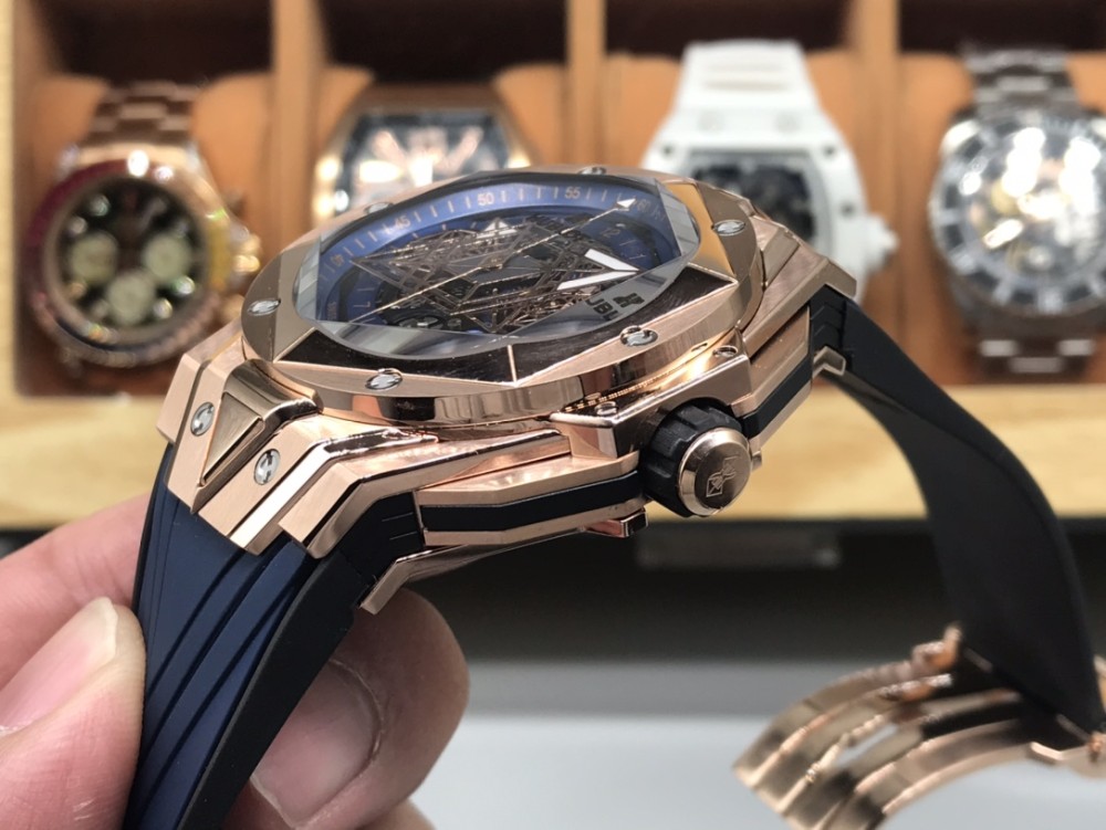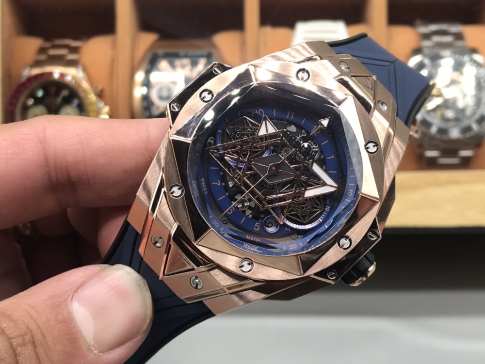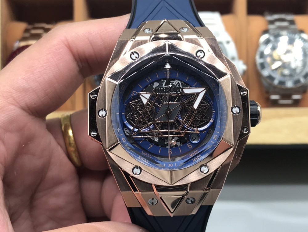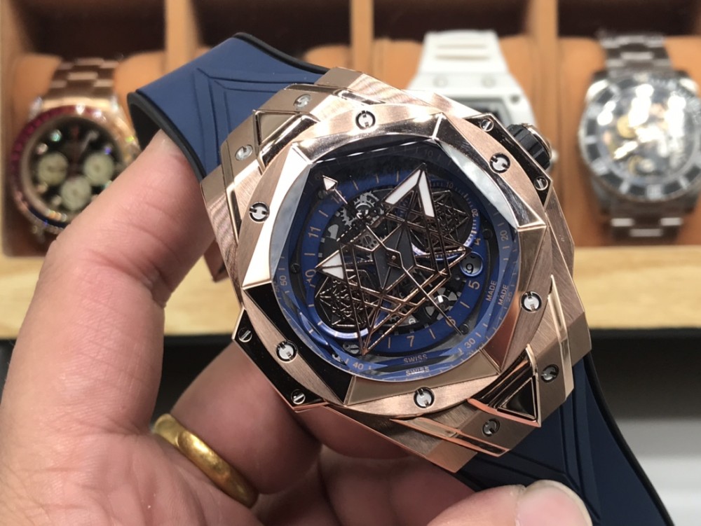 CH 위블로 빅뱅 상블루 II 타투 워치는 유명 타투 스튜디오 상블루와의 또 다른 협업을 통해 탄생한 새로운 타투 II 타임피스입니다. 기하학적 형태를 영리하게 디자인하여 브랜드의 야심과 디자인 철학을 완벽하게 담아냈습니다. 타투 II 워치는 더욱 세련된 라인을 사용하여 생생한 3차원 시각적 경험을 선사합니다. 1️⃣ 45mm 케이스는 케이스 전체에 걸쳐 그래픽 요소가 흐르며, 육각형 베젤에는 커팅과 인그레이빙을 통해 통합되었습니다. 6개의 H자형 티타늄 스크류가 베젤을 견고하게 고정합니다. 러그는 날카로운 각도와 선으로 강렬한 디자인 감각을 보여줍니다. 2️⃣ 다이얼에서 가장 눈길을 사로잡는 것은 다이아몬드 형태의 시침과 분침, 그리고 두 개의 육각형 바늘입니다. 시간이 지남에 따라 독특한 기하학적 패턴의 시각적 효과를 만들어냅니다. 3️⃣ 기하학적 라인으로 3차원적인 시각적 경험을 선사하는 블랙 러버 스트랩. 4️⃣ 사용하기 쉬운 폴딩 버클. 5️⃣ 이 시계는 7750 자동 크로노그래프 무브먼트, 티타늄 내부 케이스 백, 새틴 마감의 스켈레톤 핸즈, 그리고 긁힘 방지 코팅 처리된 다면 사파이어 크리스탈을 특징으로 합니다. 수입 플루오로엘라스토머 스트랩은 편안한 착용감을 보장합니다!